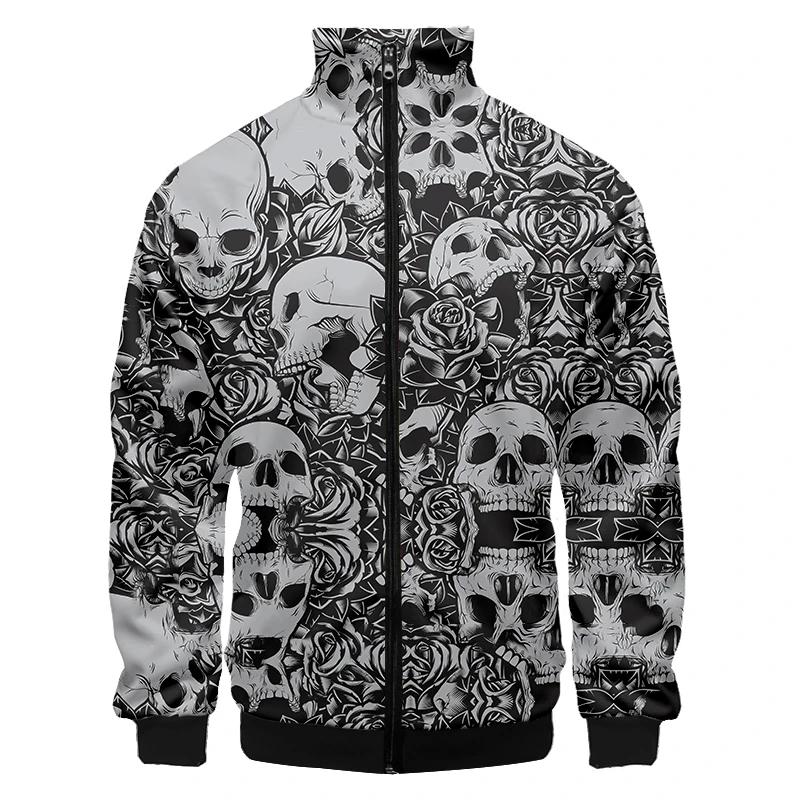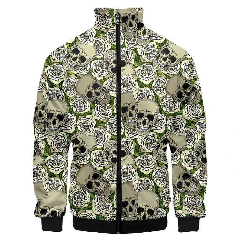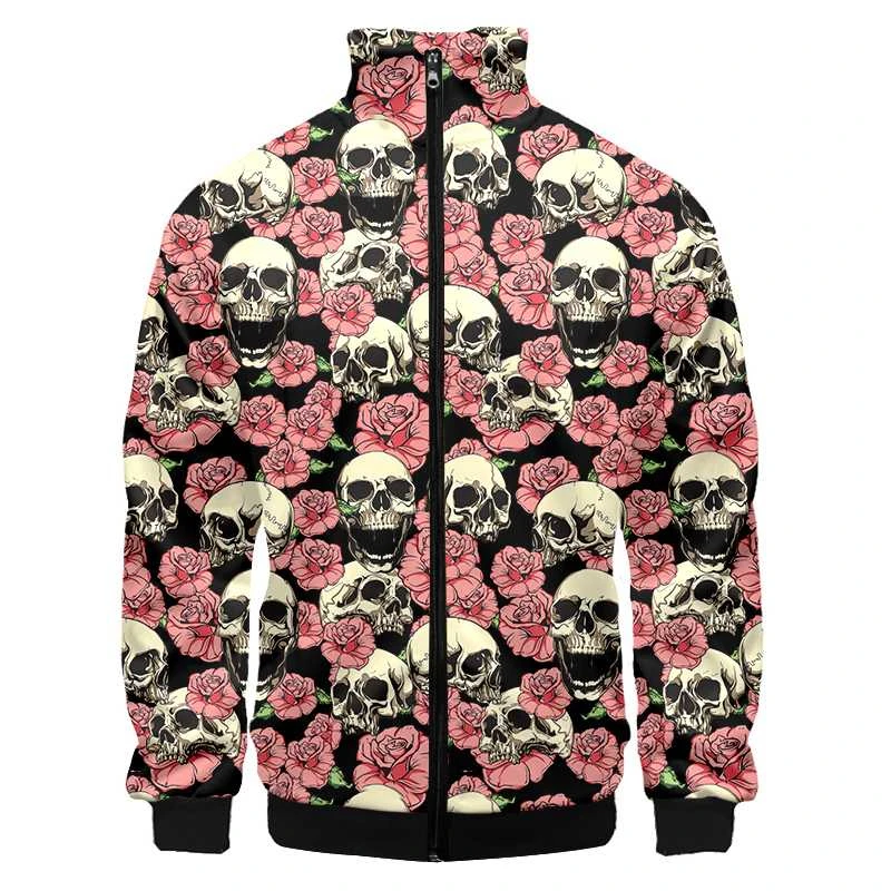 3D Printed Pink Rose Skull Zip Jacket For Men Clothes Funny Mens Designer Clothes Streetwear Men Coat Tops High Quality Jackets